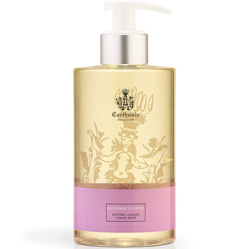 This liquid hand soap creates a luxurious lather that softens and soothes while leaving the skin delicately scented. A fragrance inspired by delicate jasmine that magically recalls the wonders of an island unique to the world. Sweet and sensual, where jasmine absolute meets Italian ginestra, bergamot, mandarin, lemon, amber and cashmere wood.