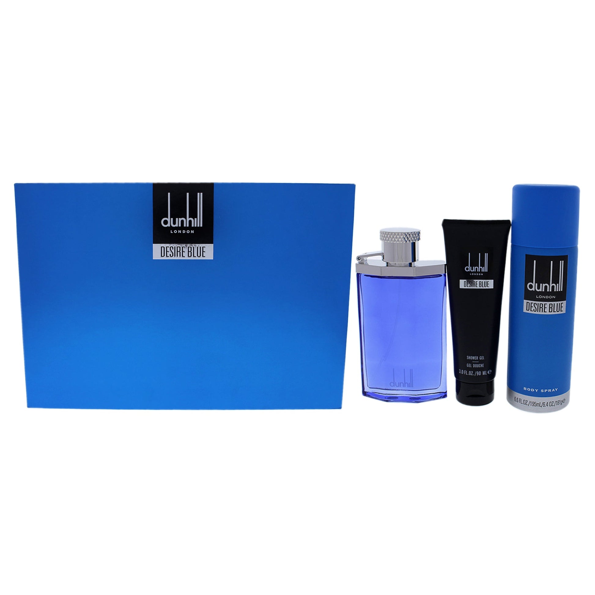 Desire Blue by Alfred Dunhill for Men 3 Pc Gift Set 3.4oz EDT Spray, 3oz Shower Gel, 6.6 oz Body Spray
