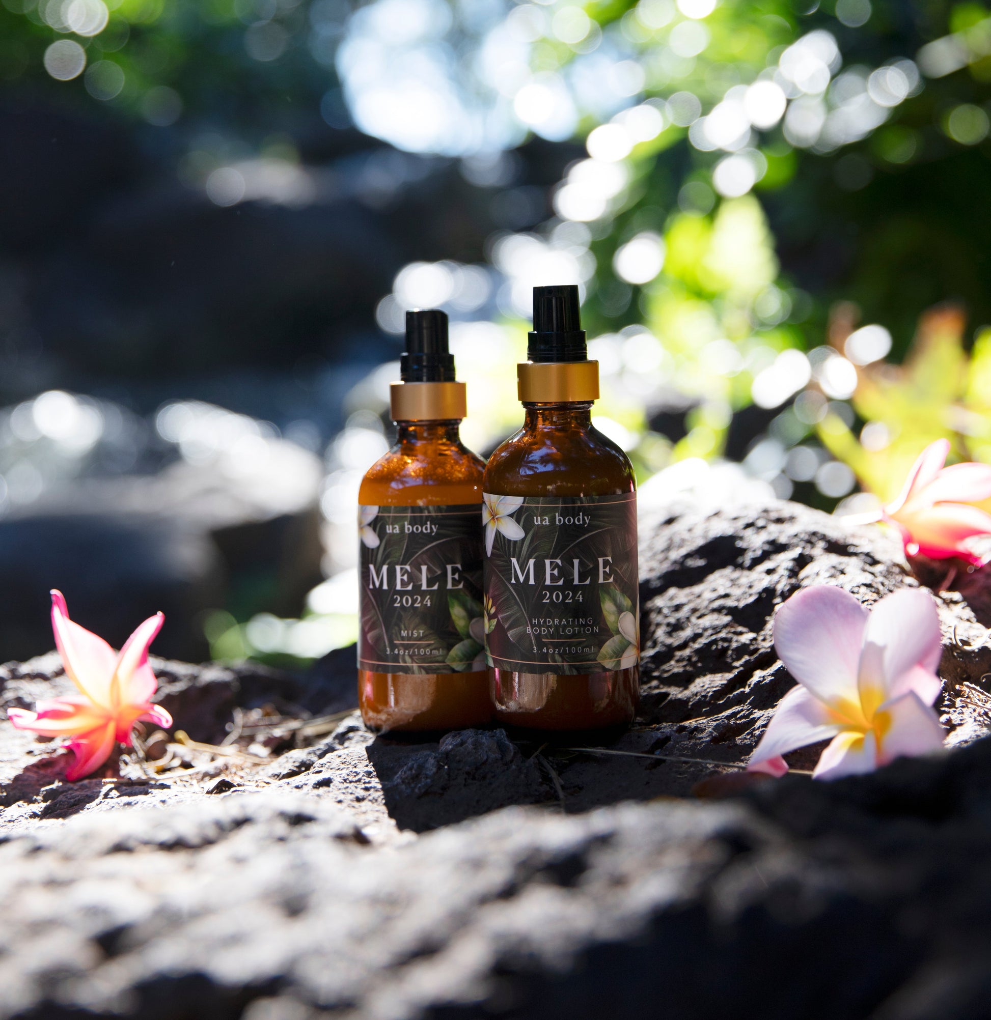 Inspired by the art of hula, and the fragrant flowers of Hawai'i, "Mele" is a fragrance that combines the florals and leaves used in Hawaiian lei. Mele means song, chant, or poem in Hawaiian. The essence of Plumeria runs through the heart of this fragrance. It is complemented with soft honeyed notes of Tuberose and Pakalana, and given a softness with the subtle scent of fern and ti leaves.
